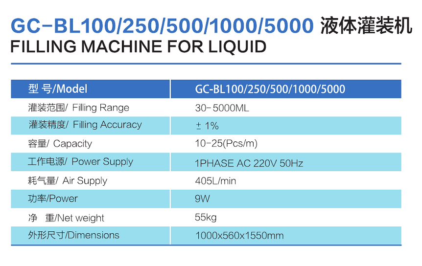 GC-BL100/250/500/1000/5000 液体灌装机